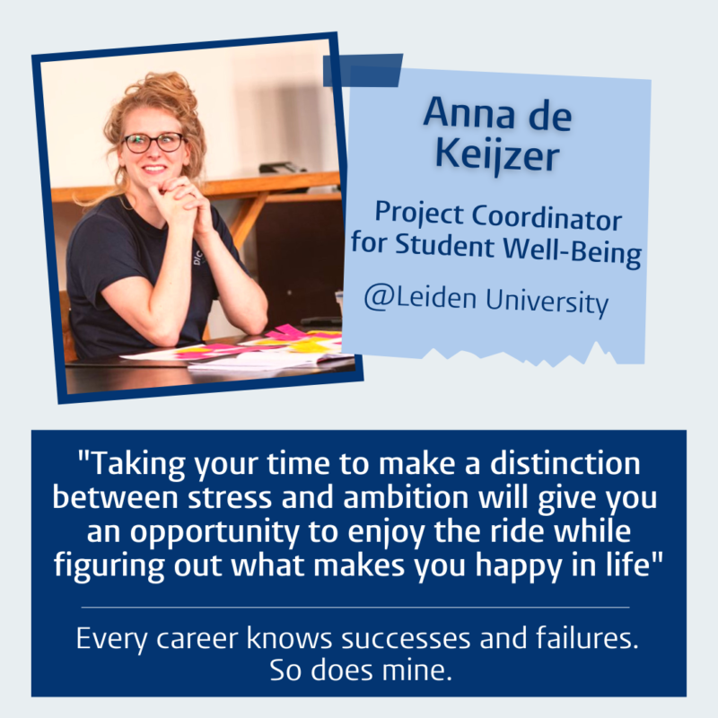 “Taking your time to make a distinction between stress and ambition will give you an opportunity to enjoy the ride while figuring out what makes you happy in life” - Anna de Keijzer, Project Coordinator for Student Well-Being